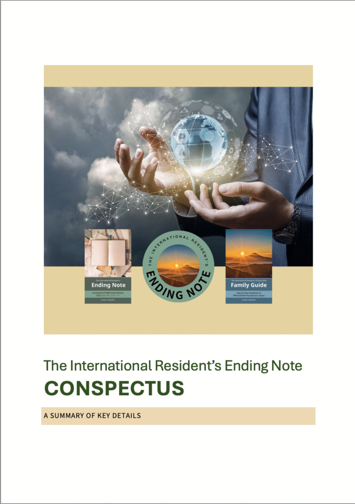 “After returning to Japan, I imagined how difficult it will be for my American family to handle death procedures here when I shuffle off this mortal coil. And that’s why I put together the Ending Note and its companion book, the Family Guide. It’s for me, my sister, and all the foreign residents of Japan and their families.”